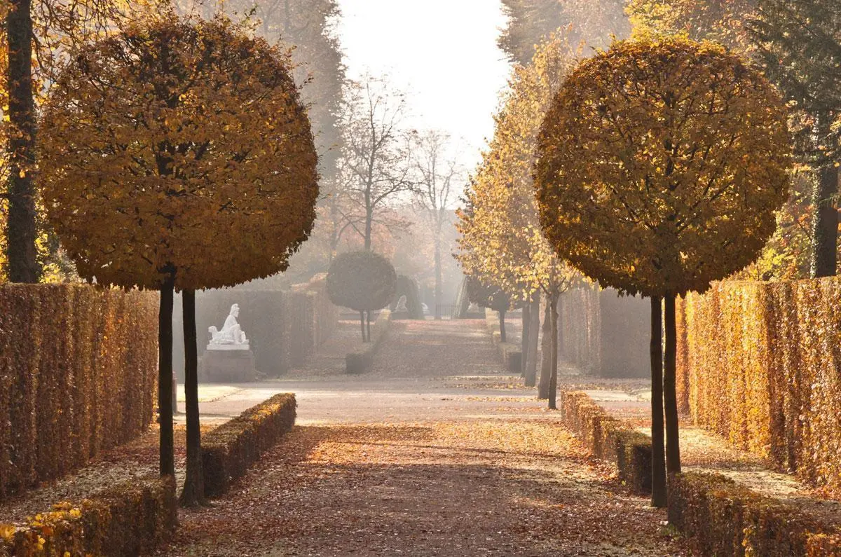 Geometrische Formen herrschen in der Gestaltung der schnurgeraden Wege und Blickachsen vor.