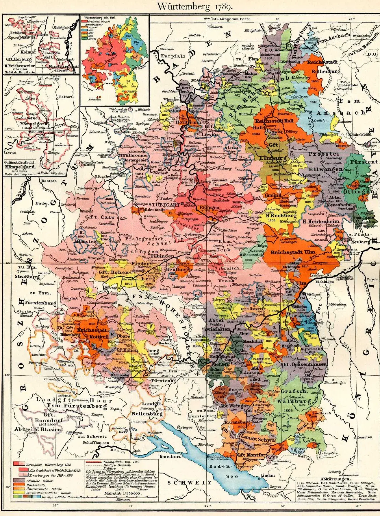 Das spätere Territorium Württembergs 1789, Putzger – Historischer Schul-Atlas